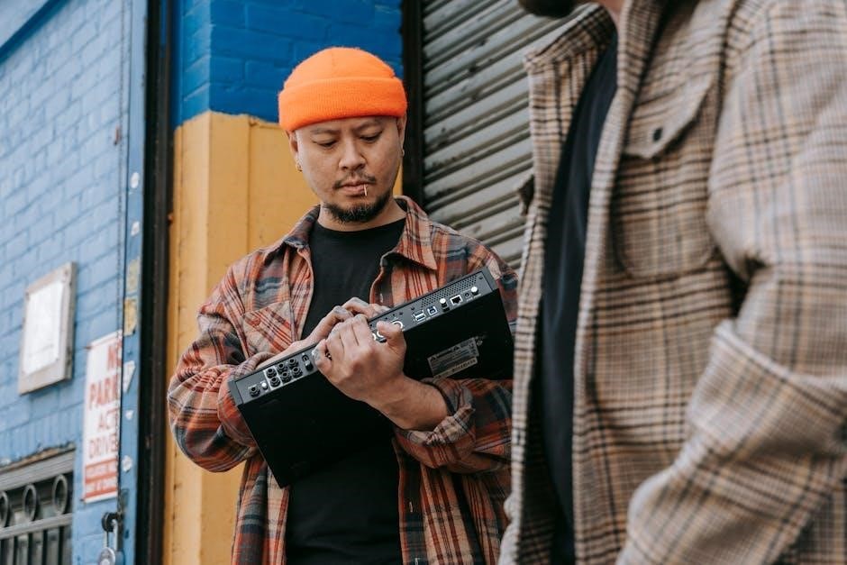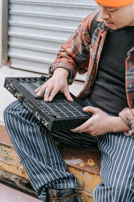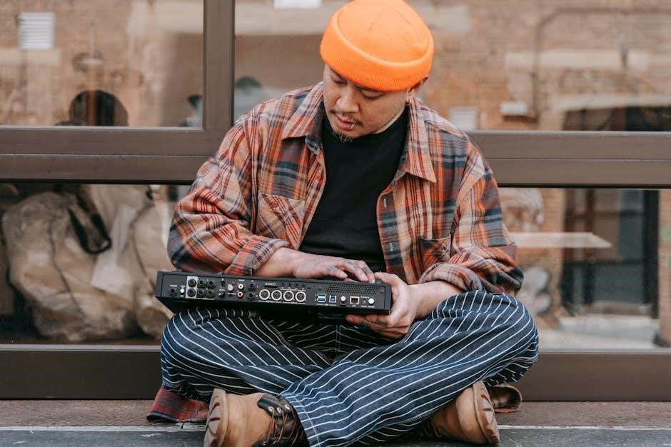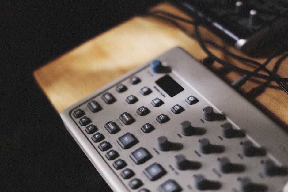 Experiment with rests – silencing steps – to create syncopation and interesting rhythmic textures. Understanding the sequencer’s grid layout is crucial for efficient pattern building. Refer to the full manual for advanced sequencing techniques and parameter control.